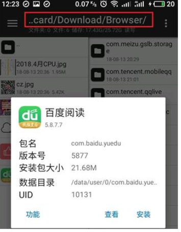 我这里以百度阅读这个apk为例,安装一下,可以看到名称,点进去软件也可以看看