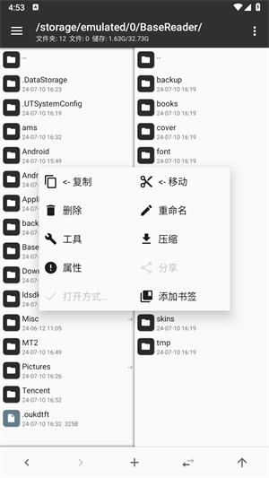1、压缩操作:支持多种ZIP压缩包操作,方便用户对文件进行压缩和解压缩,可以高效率进行文件管理使用。
