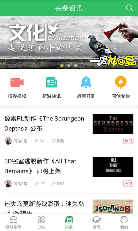 3、新闻--提供前沿新游快讯、热游资讯、原创专栏、行业报道操作。