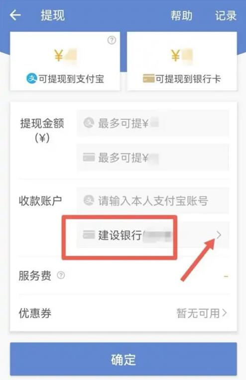 3、进入提现界面,收款账户中点击绑定的银行卡号。