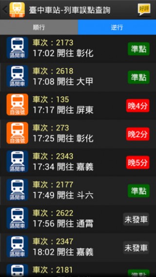 《台铁轻松查火车时刻表》是一款非常好用的软件,功能强大,十分具有特色,每天更新100多条改道和附加航线,是国内最全面、最快、最流行、最可靠的查询软件,快速回家功能让您随时随地一键回家,到站提醒功能让您实时掌握每辆车的方向。