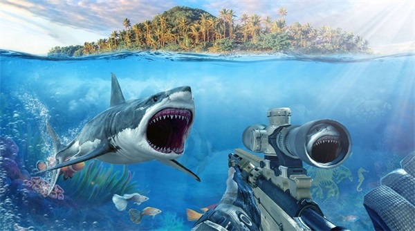 2、开火,在深海中杀死鲨鱼,营救人质,完成购买更强大武器的任务,挑战更可怕的鲨鱼老板。