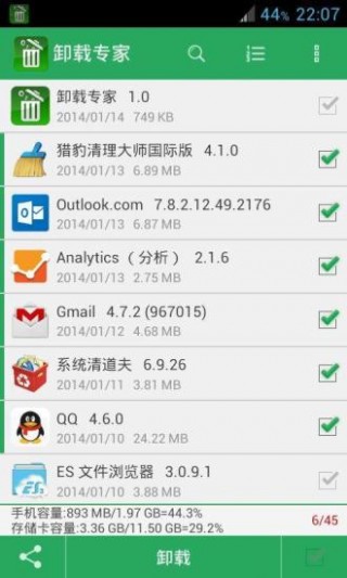 更快更好的卸载工具。卸载专家是一款android手机上专业的卸载工具,用于方便的帮助您卸载手机上不用的软件。另外,这里还有其他实用的工具,例如分享您的应用给好友,或者备份您的应用以备不时只需。