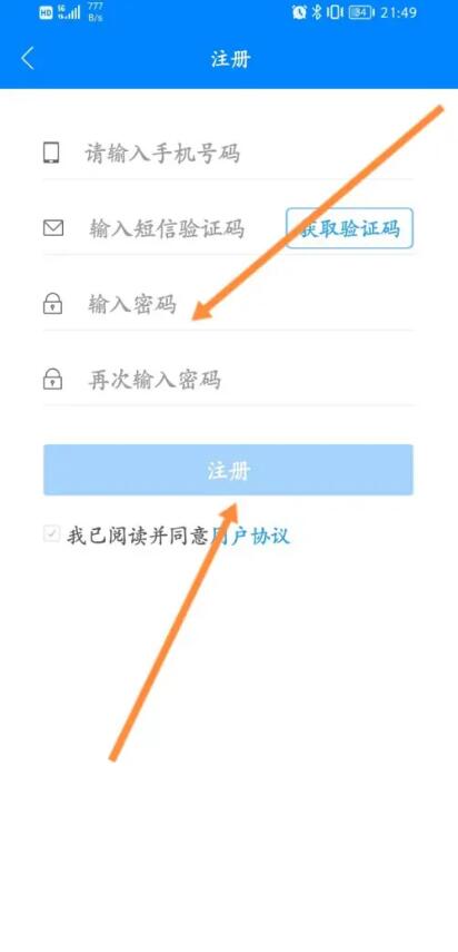 4、最后输入手机号与密码,点击注册即可。
