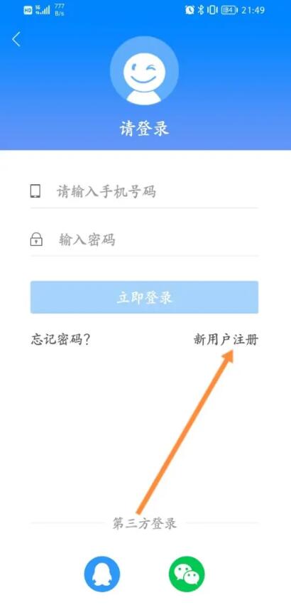 3、点击上面的新用户注册选项。