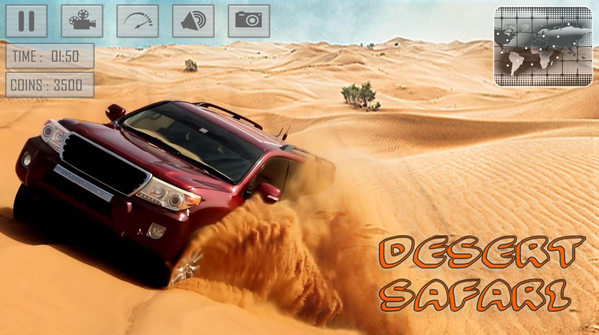 2、这款游戏里去选择自己喜欢的汽车,然后在沙漠轨道上自由疾驰。