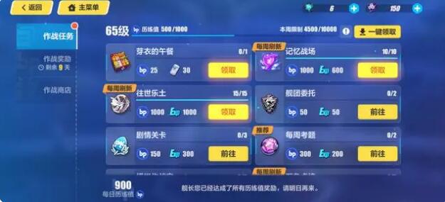 1、首先就是这个日常,这个是要每天都要打满的,这也是前期一部分水晶的来源。