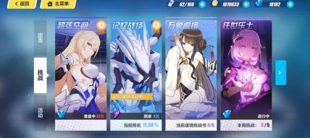 7、我现在在终极区,所以我这里是超弦空间,高级区及以前应该是量子流形,这里统称为深渊。深渊每周有两次分别在周一和周五下午三点开启。每期深渊都会和不同的人一组,根据最后的分数进行排名并且分配奖励。深渊分为初级区中级区高级区和终极区,终极区这里先不讨论。除了终极区每个又都分为禁忌原罪苦痛红莲。越高奖励越好当然也会越难打,玩家会再七十级之后自动步入高级区。这里就不过多介绍,总之每周两次能打多少打多少。