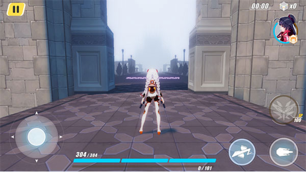 4、作为一款动作游戏,游戏的画面自然不用多说了,我们可以通过右上角切换角色。通过左侧虚拟摇杆进行人物的操控,在屏幕右侧有3个按钮,分别是闪躲,普通攻击以及释放技能,技能需要蓄力完成后可以释放。
