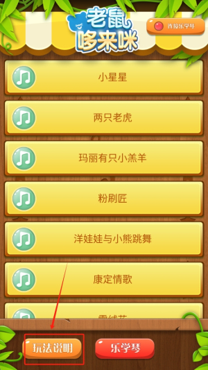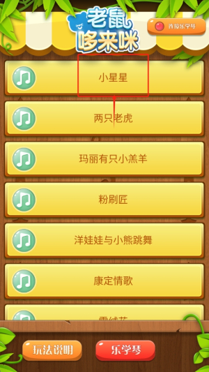 1、在游戏主界面,选择一首歌曲,如“两只老虎”,点击开始游戏。