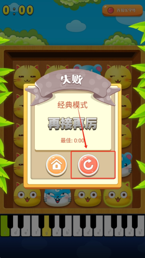 3、游戏结束后,可以点击“再接再厉”按钮重新开始本局游戏,或者点击“返回”按钮回到主界面。