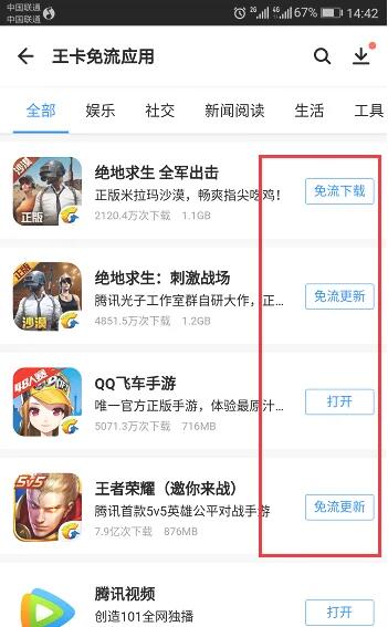 3、进去免流服务之后,申请王卡,获得王卡之后,下载全部应用都是免流量的