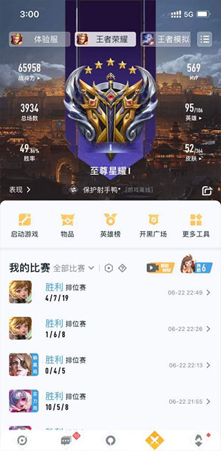 2、打开王者营地,在下方找到【战绩】并点击进入;