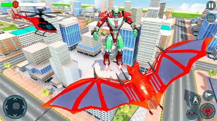 1、蝙蝠机器人超级英雄游戏玩家可以在游戏中穿梭于高楼之间。