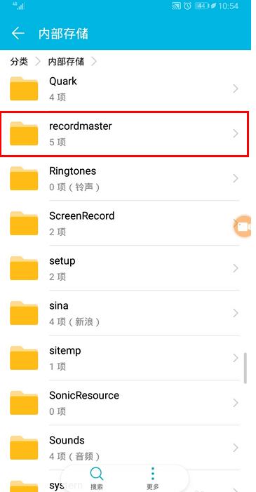 在此需要提醒大家的是,在现今的大多数安卓手机中,我们手机存储中的根目录是隐藏的,也无法访问。所以,我们只需要记住存储路径中“0”这么一项后面的数据即可(比如我这里是 “recordmaster”)。