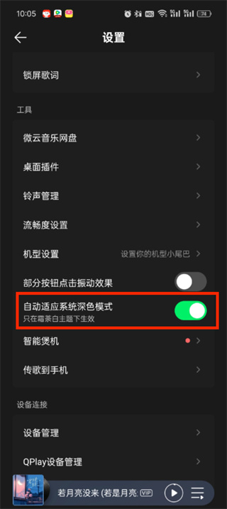 4、最后点击过后进入到设置的页面中找到【自动适应系统黑色模式】后点击开启后面的按钮即可;