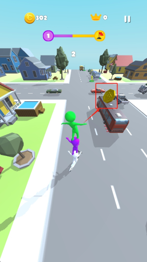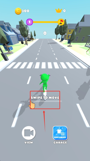 1、滑动屏幕以控制角色移动,避开障碍物。