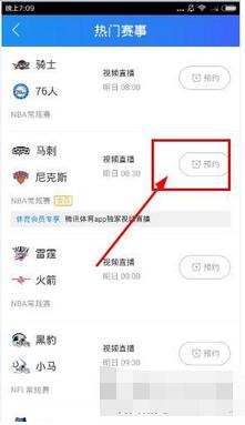2、在热门赛事界面,点击预约,之后就就可以在线看直播的哟~