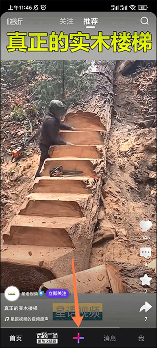 1、进入微视app后点击底部的加号;