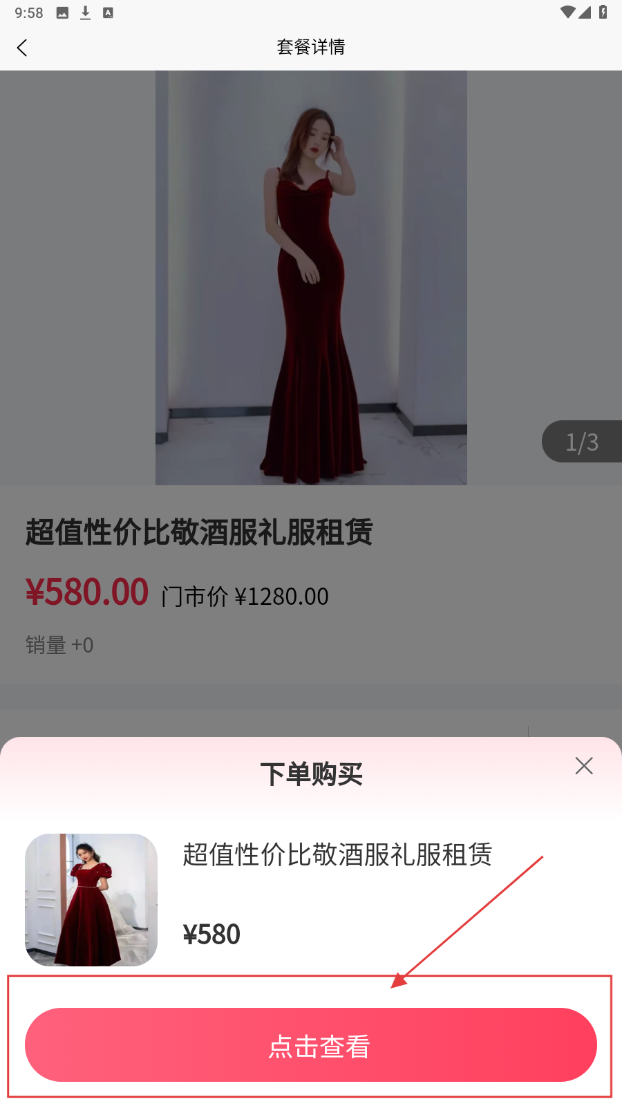 4、出现【下单购买】弹窗,点击【点击查看】即可。