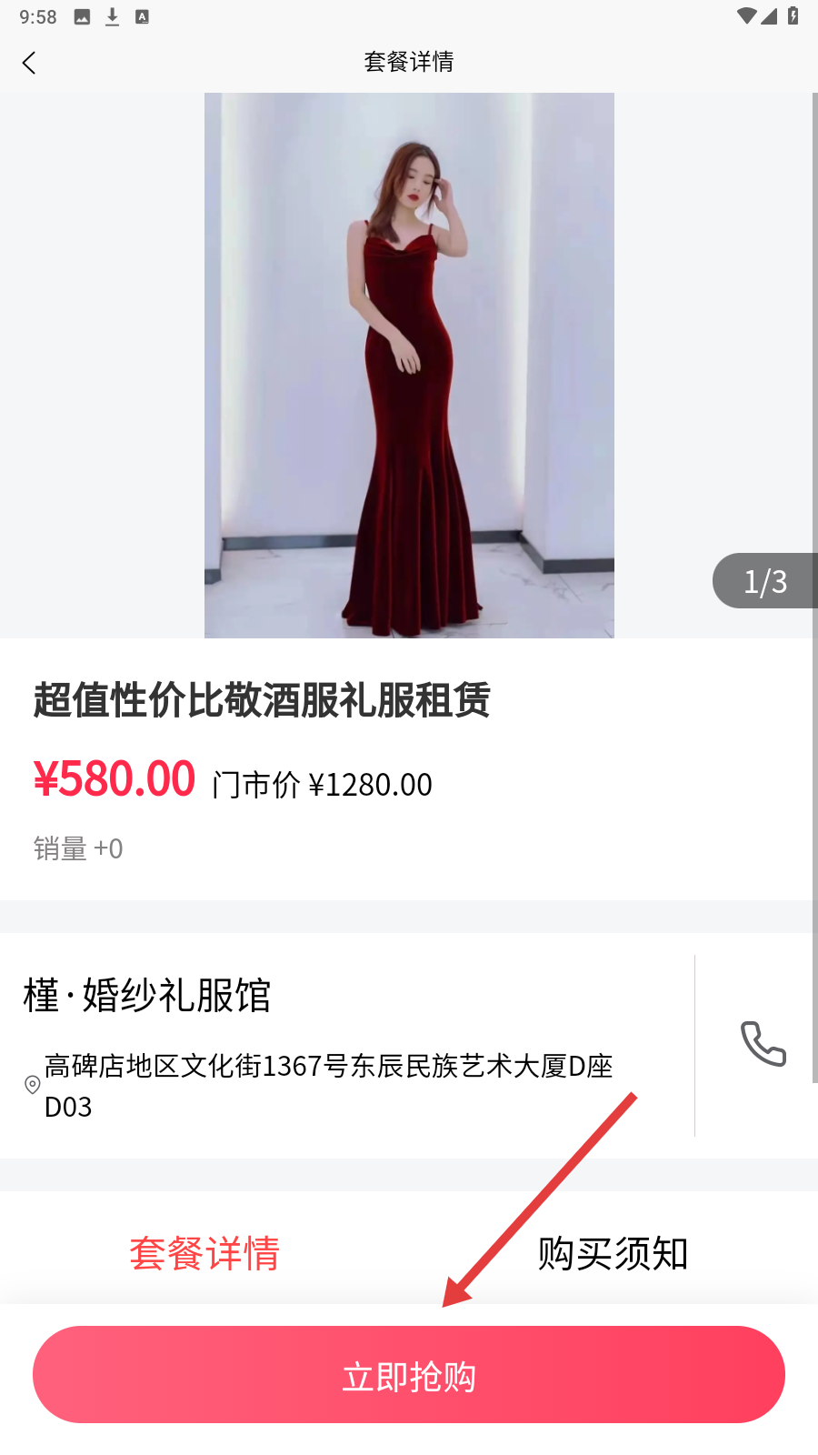 3、进入【套餐详情】页面,查看套餐信息,如若满意点击【立即抢购】。