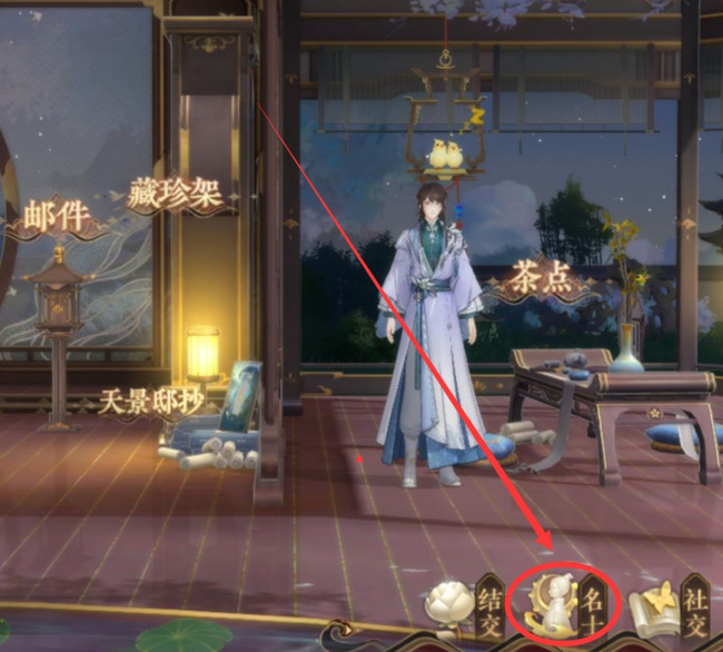 1.打开游戏,点击名士——详情