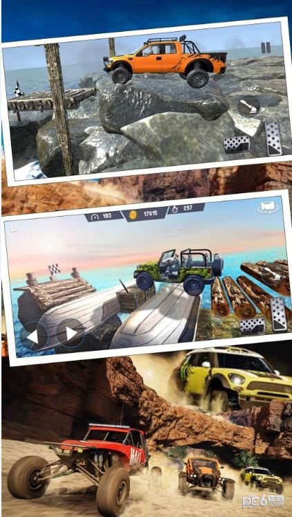 3、在各种障碍面前,不要轻易放弃。操纵车辆,越过障碍物,向终点跑去。