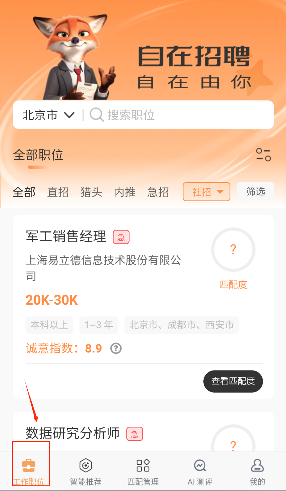 1、智能匹配系统分析岗位要求与求职者能力模型,推荐契合度高的优质职位,匹配准确率随使用时间不断提升优化。