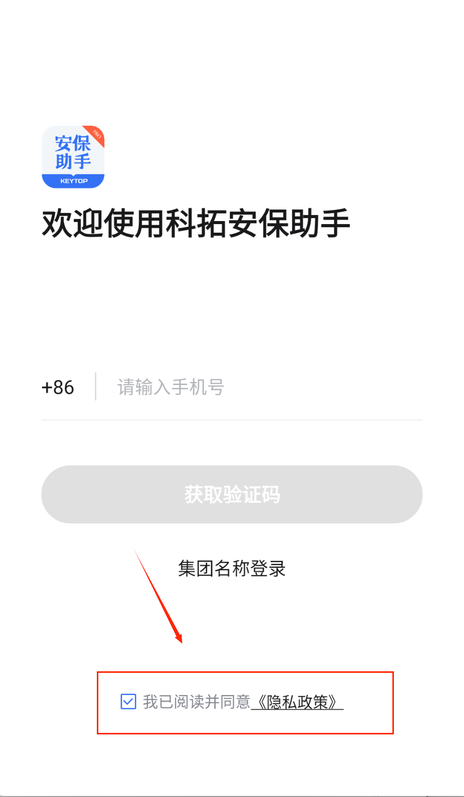 4、最后别忘了勾选底部的隐私政策同意框,那个小方框不点的话登录按钮是不会变亮的,这点要特别注意呢。