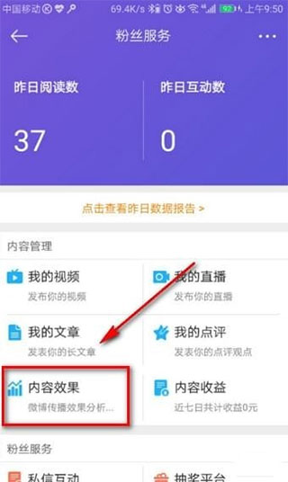 3、现在就可以看到有个昨日阅读数,点击进入内容