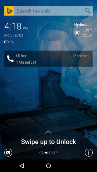 《微软图片锁屏》是微软新出的一个锁屏工具,将美丽的必应背景壁纸带入至你的安卓系统的锁屏里。这个应用可以让你简单的更换图片,且只需摇晃即可,或者向右扫动。你可以在锁屏中查看你错过的来电或短信,或者直接使用必应搜索,而无需解锁你的手机。微软图片锁屏还可以将你当前的天气、新闻或者印度地区的日历放在你的手机锁屏之上。