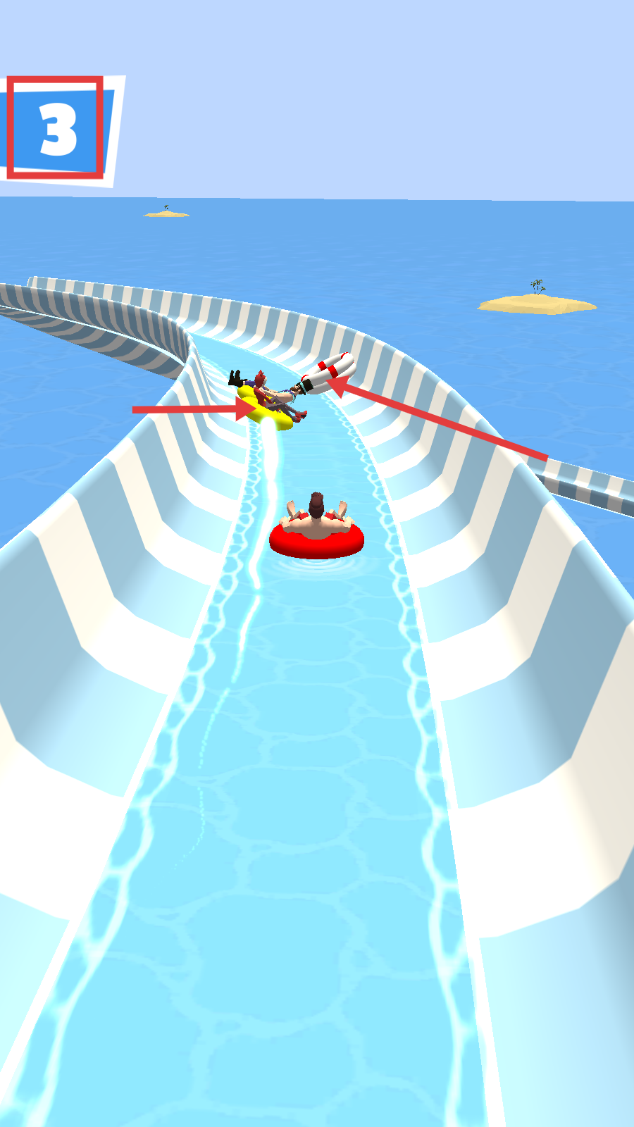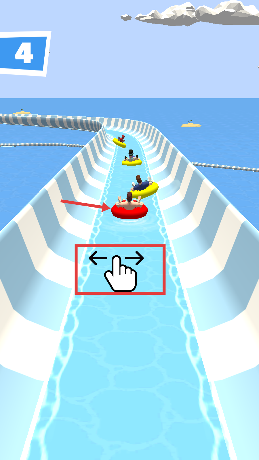 2、我们需通过左右滑动屏幕,操控红色浮圈移动,避开前方对手并保持滑行节奏。