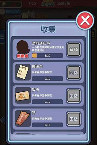 除了备课点的产出。在挖宝玩法中玩家还可以挖到很多好玩的东西,录取通知书。网吧会员卡,成绩单等等。这些东西都是可以触发一些回忆和奖励的,当玩家收集到十张录取通知书后则可以召唤阿斯加德的留学生。这样的学生在中国式班主任中有着什么样的特殊能力呢?快来在挖宝玩法收集录取通知书召唤他出现吧。