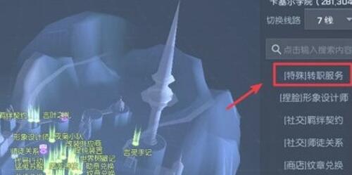 2、点击后,在地图详情界面,选择右侧的转职服务。