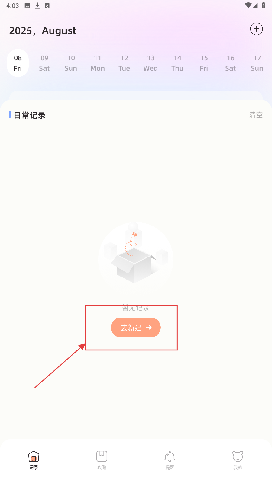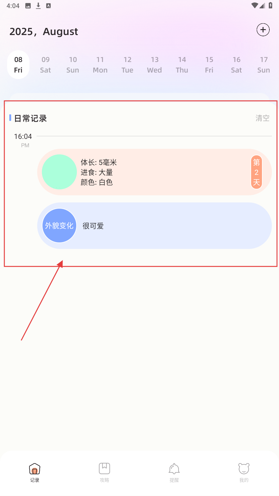 3、保存后返回【记录】页,查看日常记录列表,回顾记录内容。