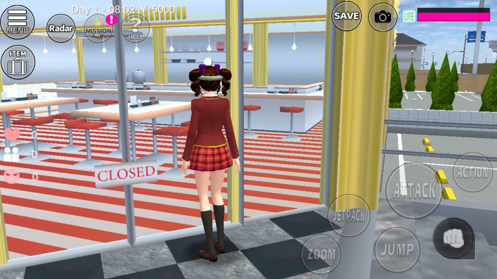 2、有时候玩家到拉面店门前后发现拉面店进不去,门口贴着CLOSED的标签。这是因为拉面店营业时间为10:00-23:00,只有在这个时间内拉面店才会开门