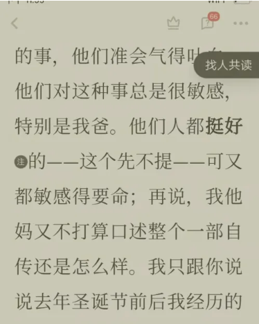 1、打开一本书,文章界面上浮着一个图标,找人共读。我们可以点击这个图标。