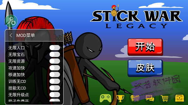 3、火柴人战争遗产召唤版游戏的这个版本里面不仅有大量的皮肤。你可以自由使用它们。