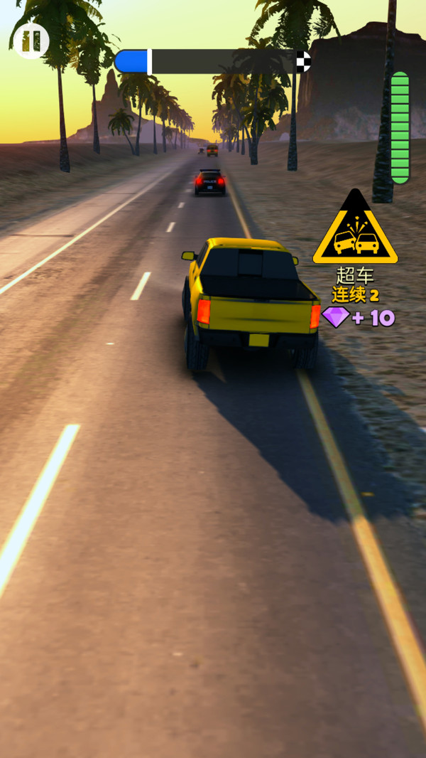 2、清新亮丽的游戏画面,开着自己的车,不停地前行还有很多挑战等你尝试。