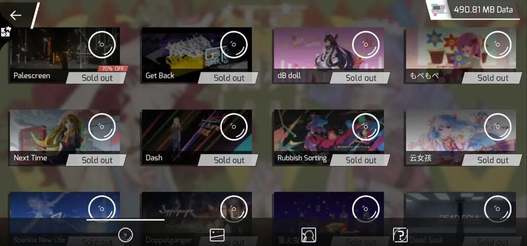 2、我们可以看到这下面有四个按钮,分别对应歌曲,曲绘,头像,抽奖。点击你想购买的东西就可以购买了,然后就会弹出这个界面。
