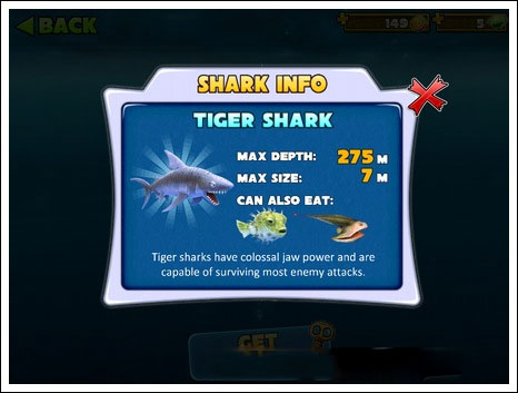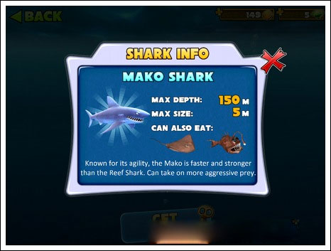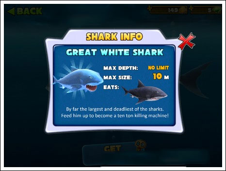 小编推荐:系统默认的鲨鱼,初始血量少,而且速度较慢,会被很多的鱼类攻击,不实用。