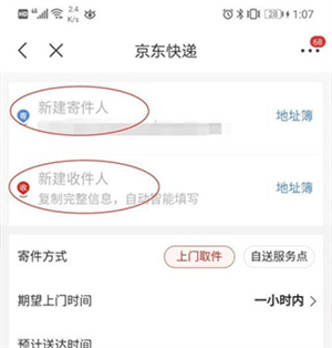 4、添加收件人,点击“新建收件人”,进入收件人添加,你可以新增收件人,或者直接从京东商城收货地址中选择已有的收件人