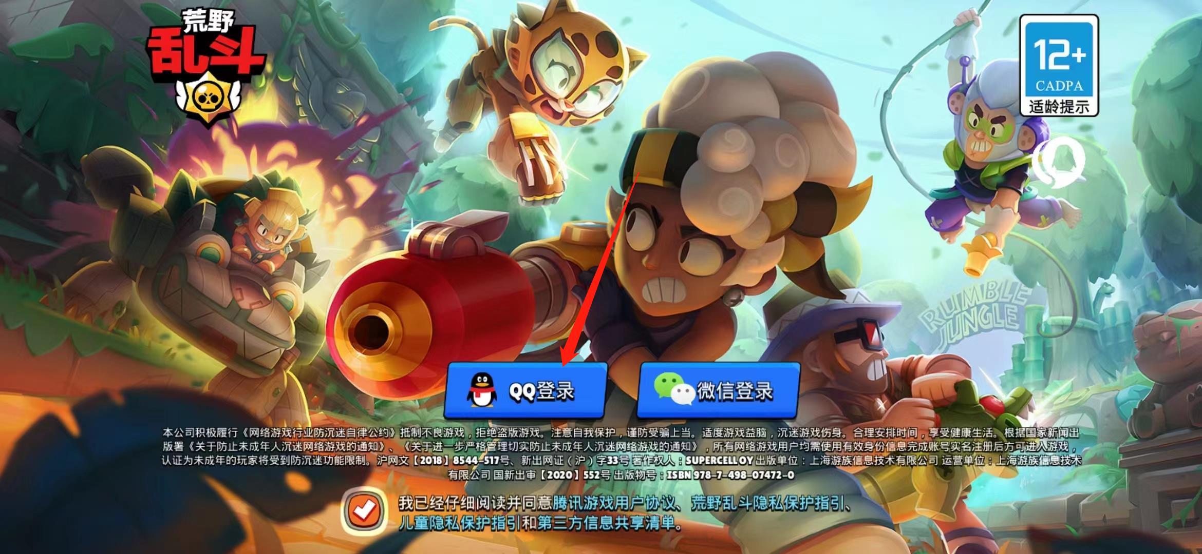 1、荒野乱斗只有腾讯版才可以扫码登录,玩家需要下载相对应版本的荒野乱斗。进入到登录界面后点击QQ登录。