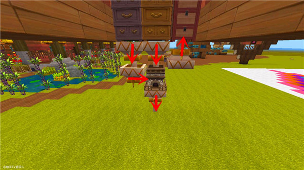 6、放置回收装置(如图)靠右的三个物品漏斗向上传递(可以用扳手改变传递方向):