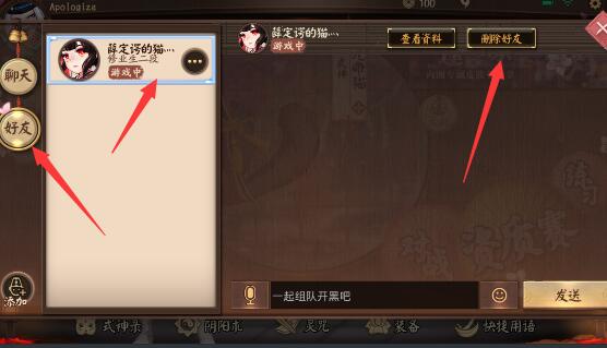 2、进入之后点击好友,然后点击需要删除的好友,最后即可看到删除好友的功能;如下图;
