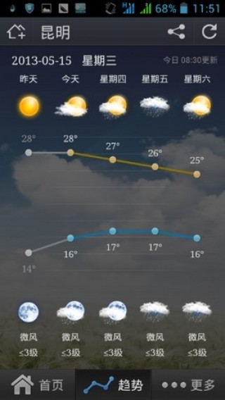 3、是一款简单易用的天气查询软件,可以立即查询天气预报信息,全国城市天气预报和空气质量。