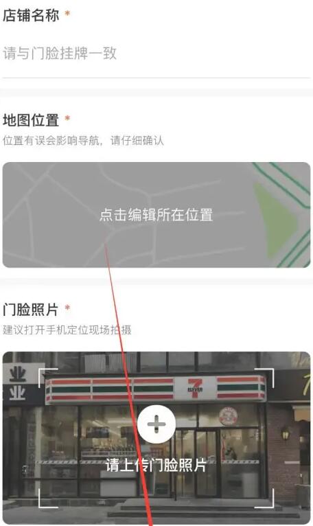 在此界面填写店铺名称、选择位置、上传门脸照片后点击下一步即可在高德地图中添加我的店铺位置了,用户可以直接定位到店铺。