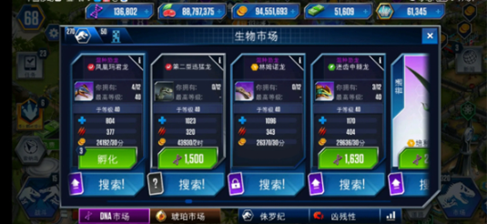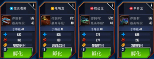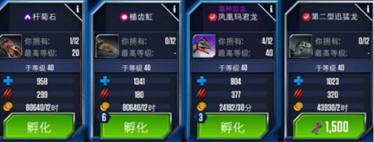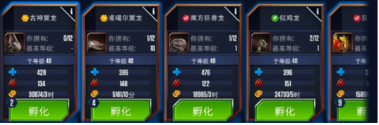 3、侏罗纪世界国际服每只恐龙都会获得攻击力和战斗HP等战斗值。