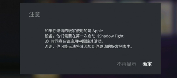 3、如果双方不是统一系统的话,需要在第一次启动游戏时同意应用跟踪。