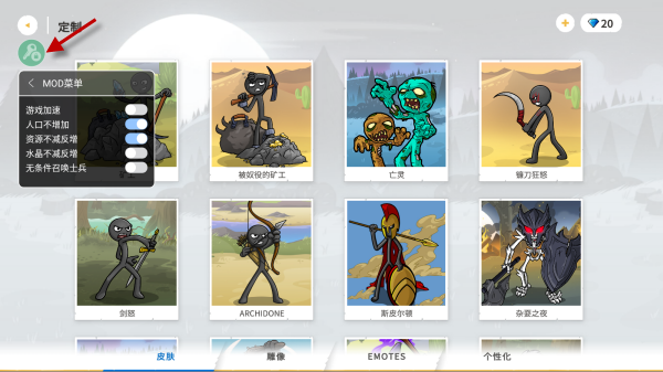 《火柴人战争遗产3内置MOD菜单最新版》带给玩家最好的内置MOD菜单版本,这个版本可以大幅度扩展游戏的核心玩法内容,可以加入不同的MOD模组,把不同时代的士兵加入在游戏之中,还可以对地图和兵种进行修改,让游戏的难度得到提升,为玩家带来全新的玩法元素,并且还是最新版本,修复很多bug,让玩家放心体验。该版本解决的游戏内部的数字问题,通过游戏中自带的数值修改器,该工具可以对游戏的人口和士兵数量进行修改,资源也可以不限量,让游戏体验变得轻松起来。作为一款火柴人题材的战斗策略手游,玩法体验非常容易上手。在这个游戏中你可以选择不同的角色进行战斗,通过不断的冒险来提升军团的实力。不同的玩法还是很热情的,可以更好的享受游戏。